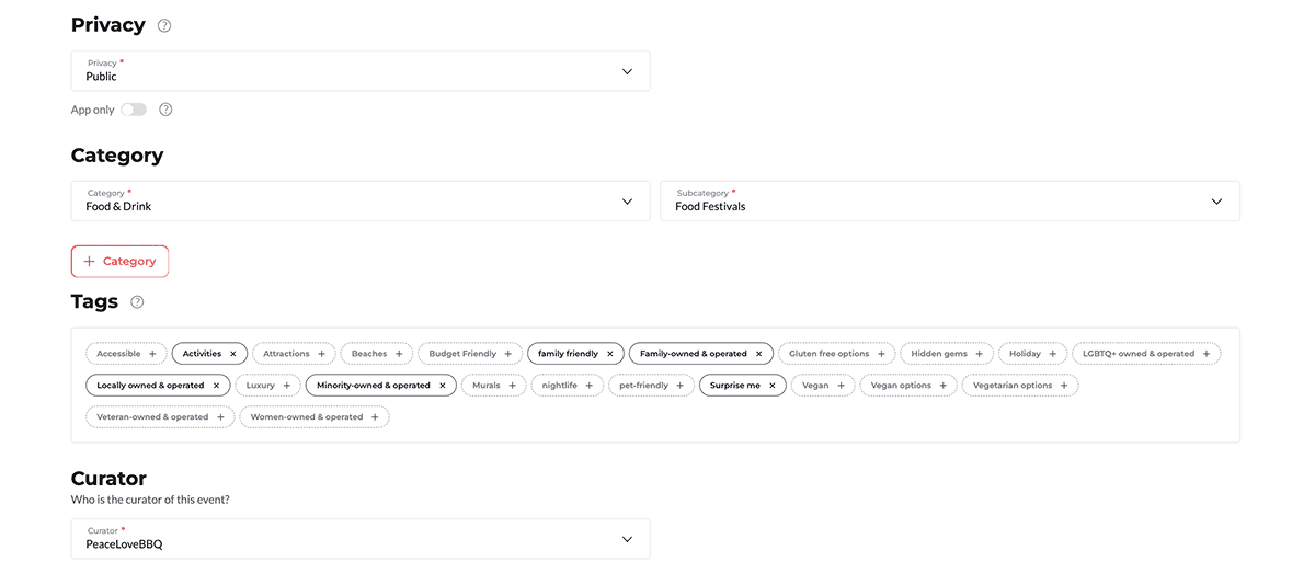 Select your category and subcategory. This will help users find your event easier if they're searching for events under that specific category.