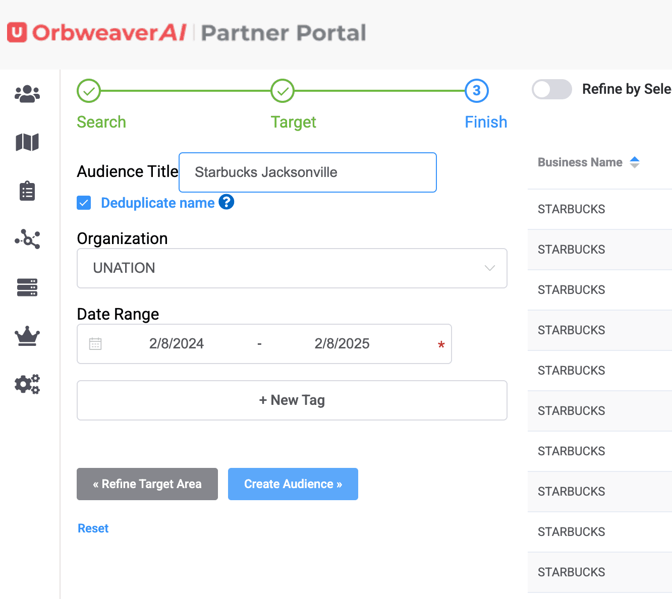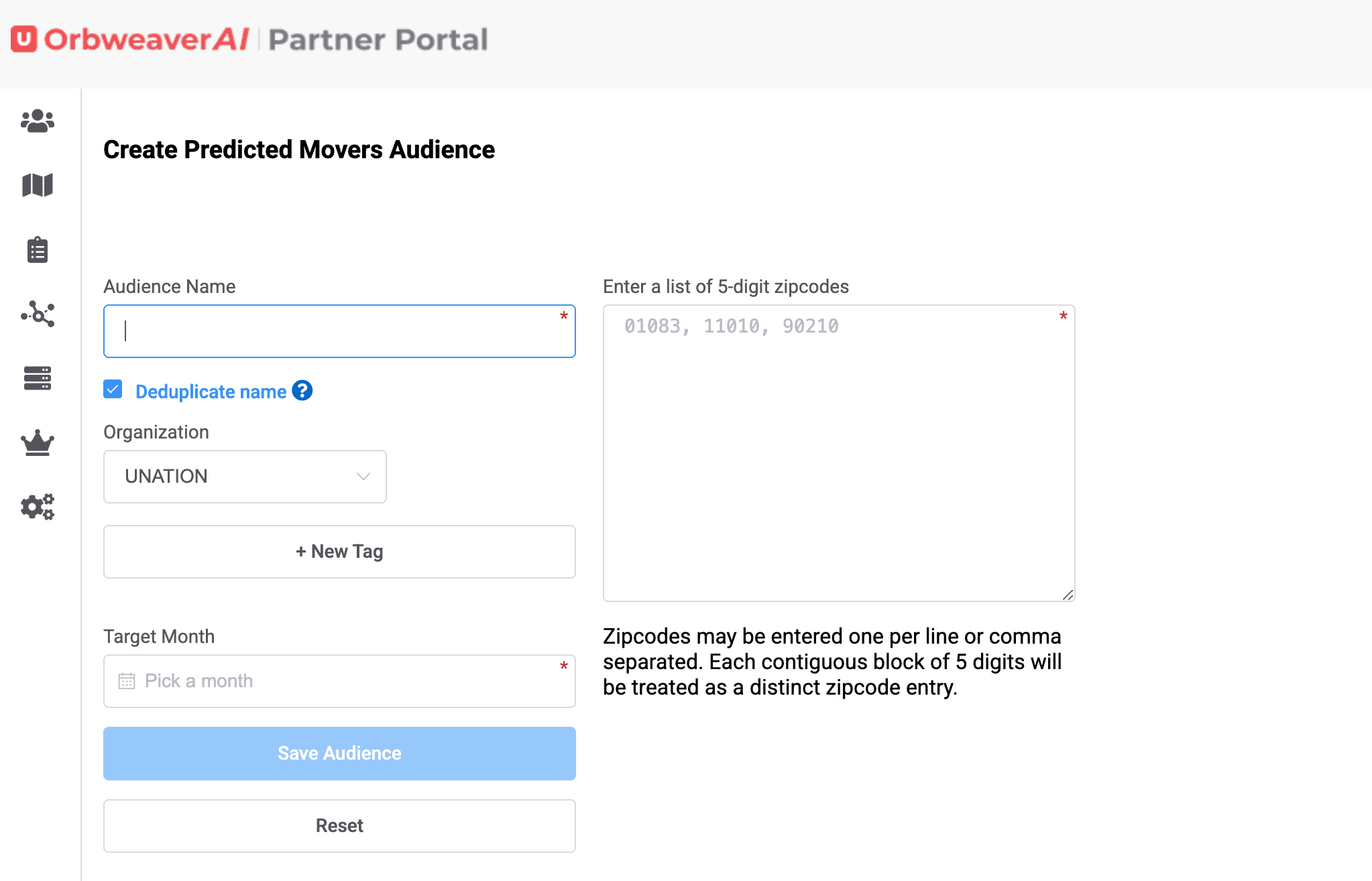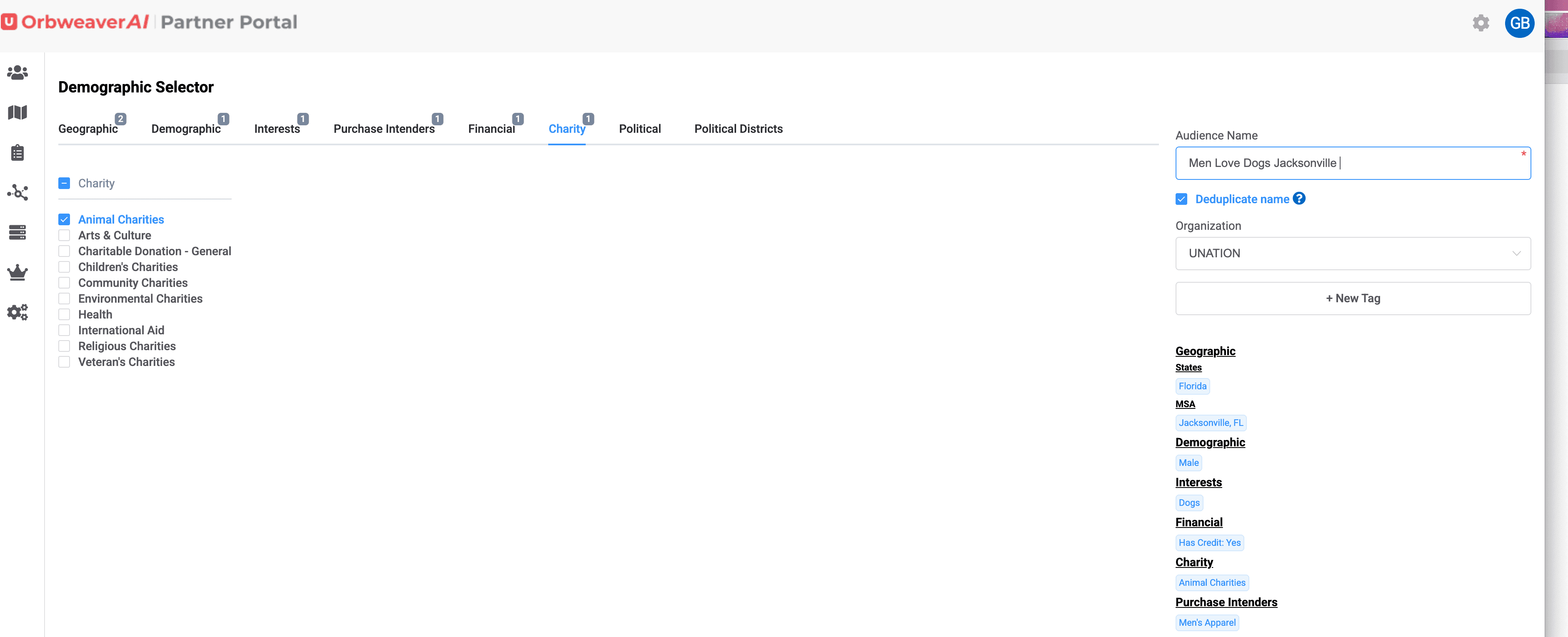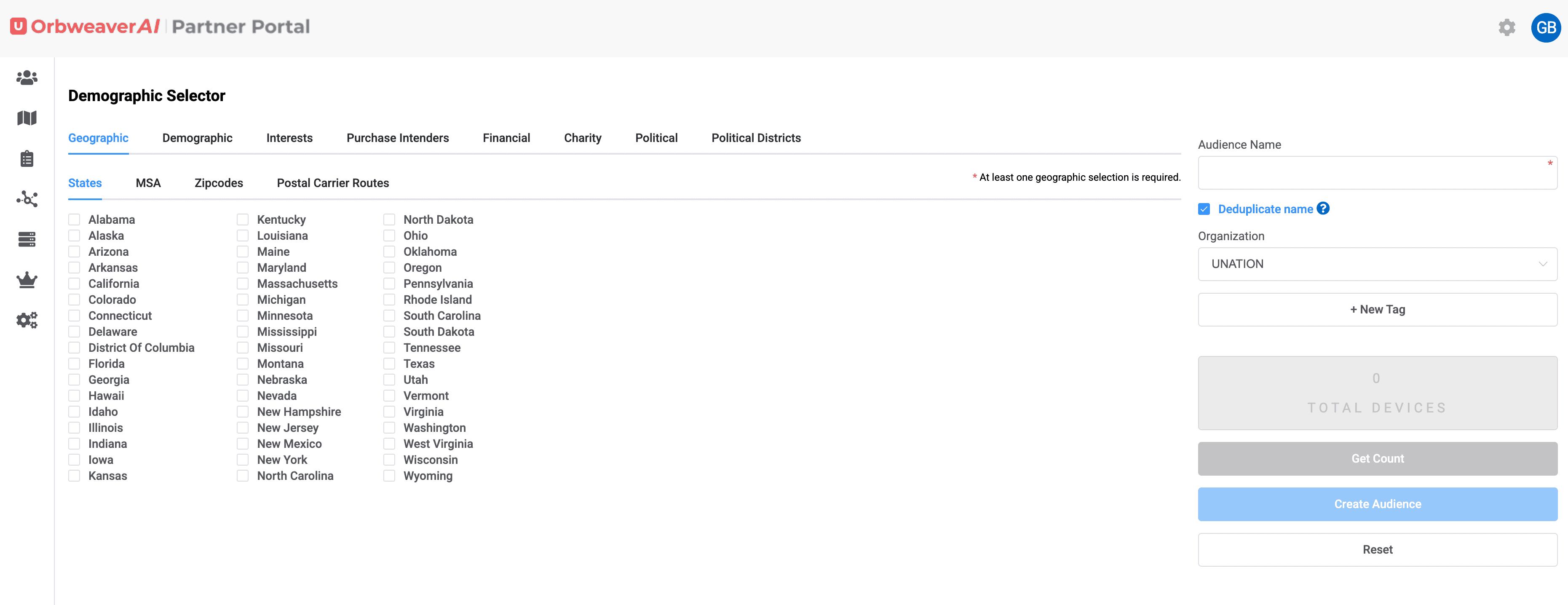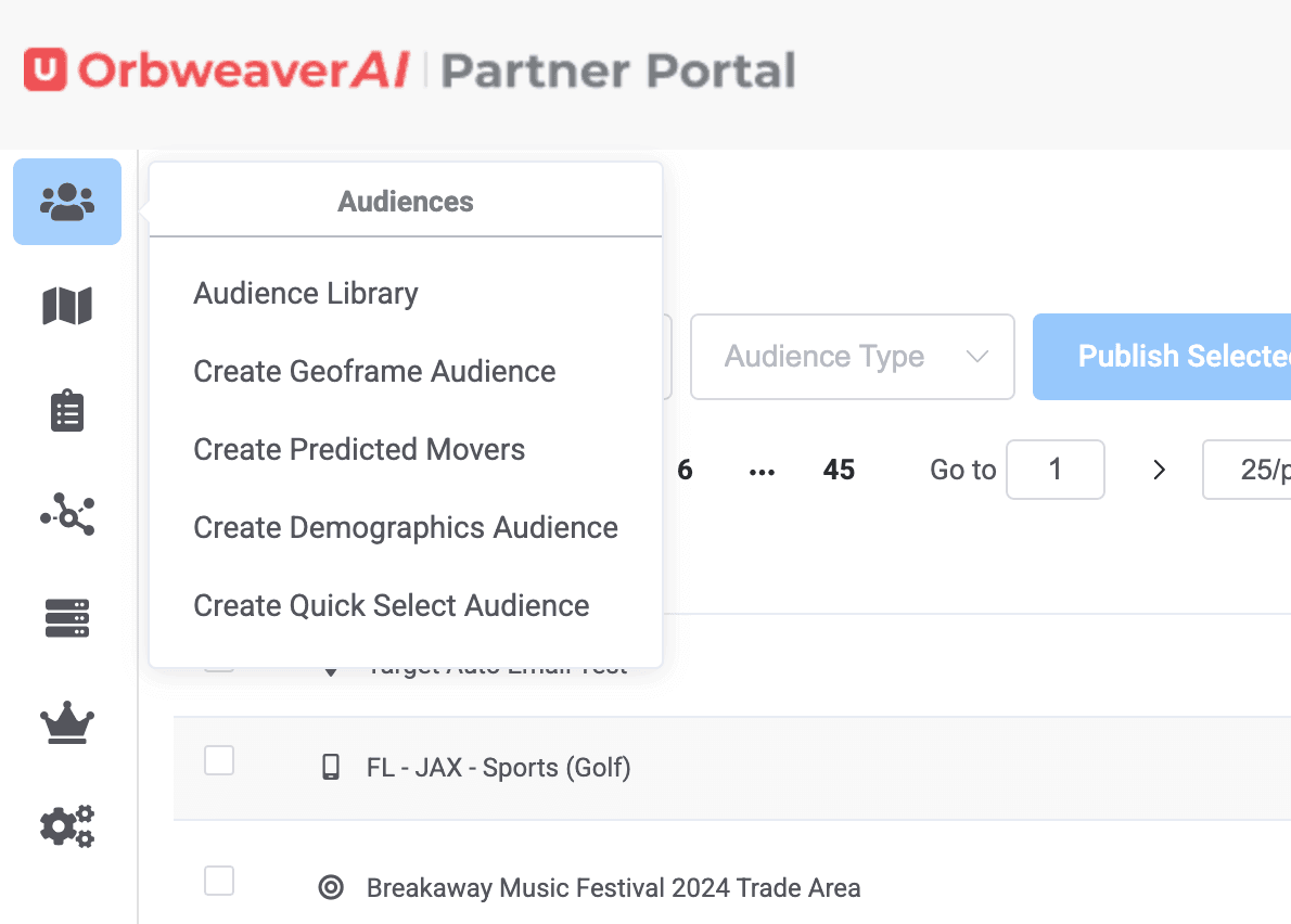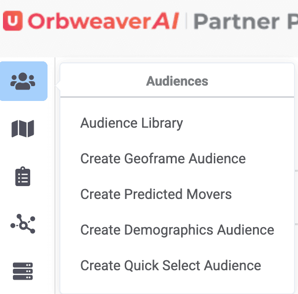 Building a demographic audience and attaching MAIDs is simple on OrbweaverAI Partner Portal. First, choose the demographic option on the Left Hand Menu