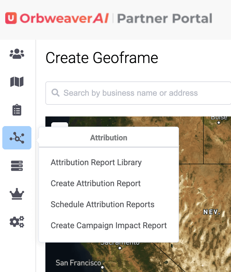 To begin, go to the Left Hand Menu of your Partner Portal, click on the second icon and choose "Create Geoframe".