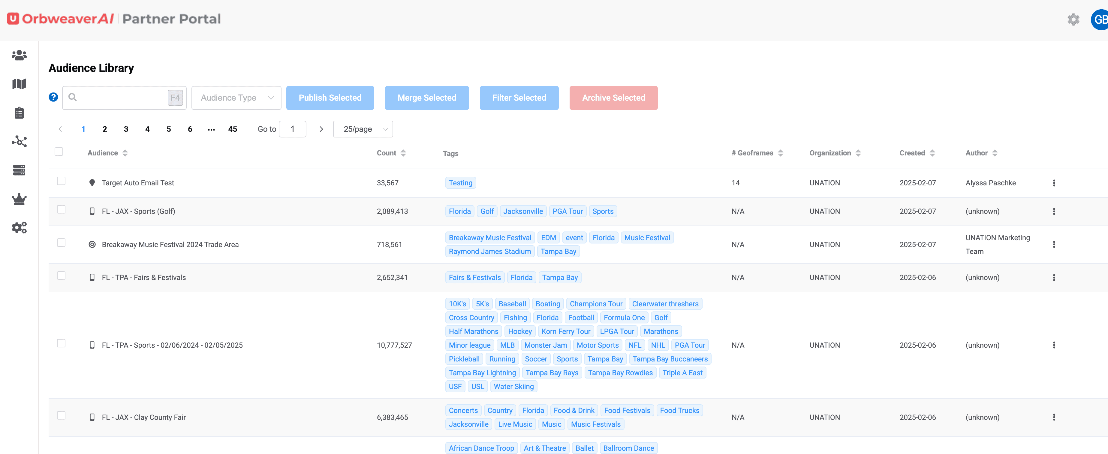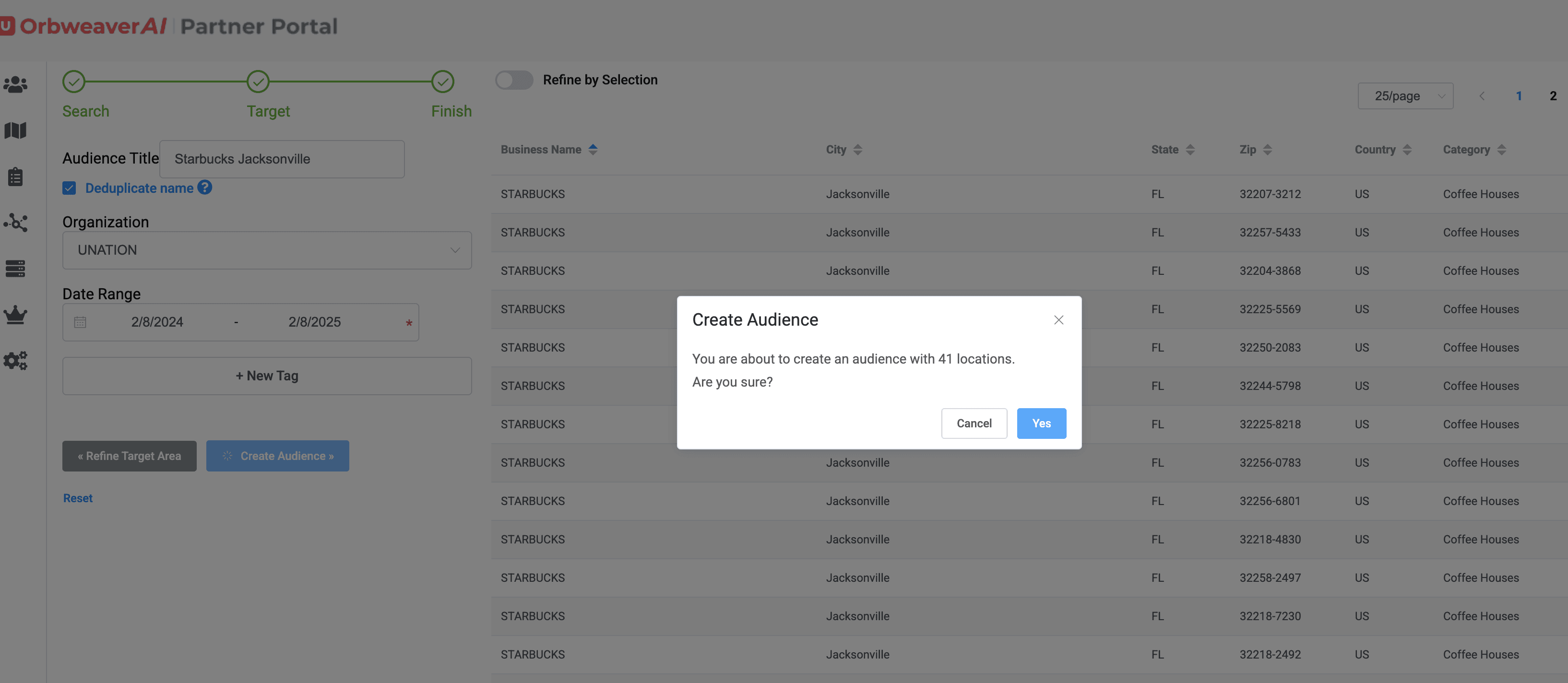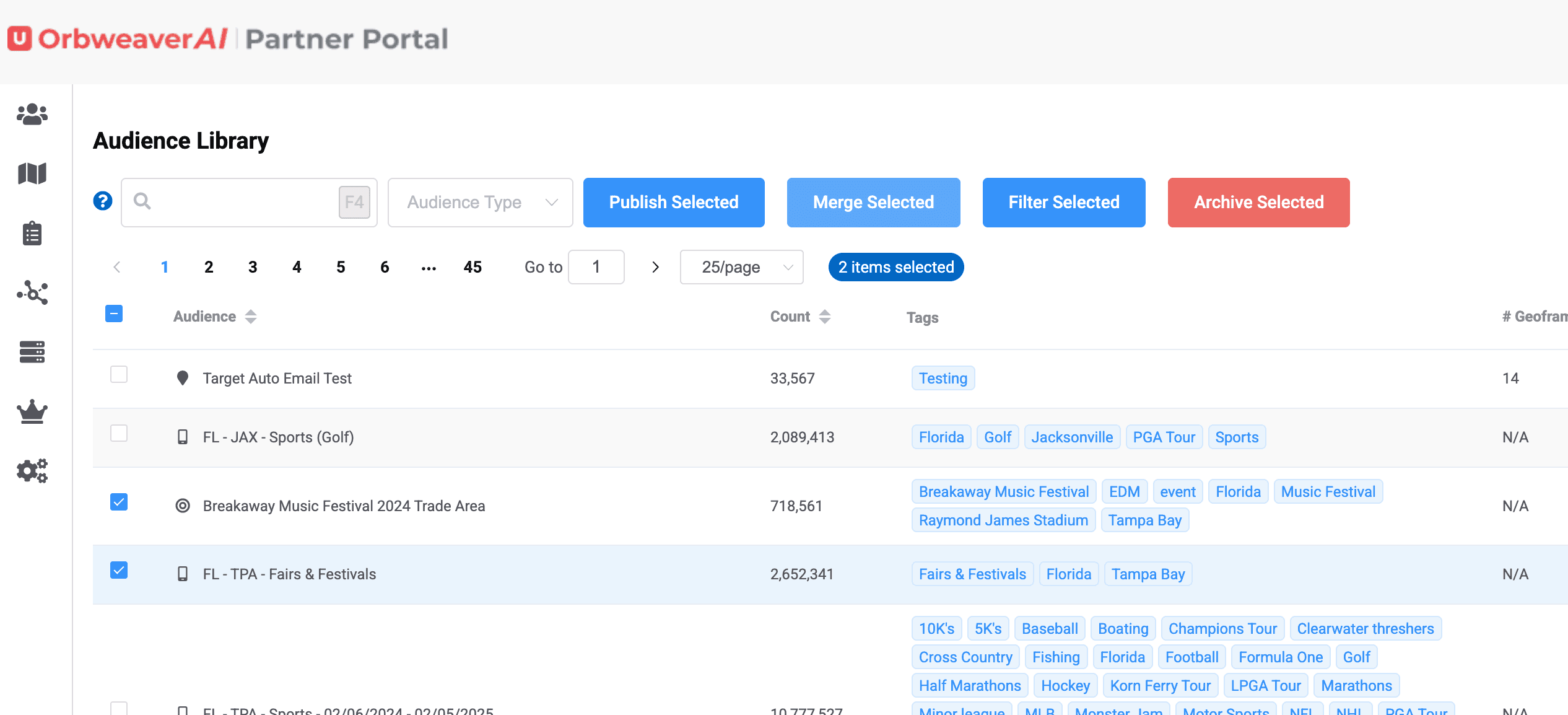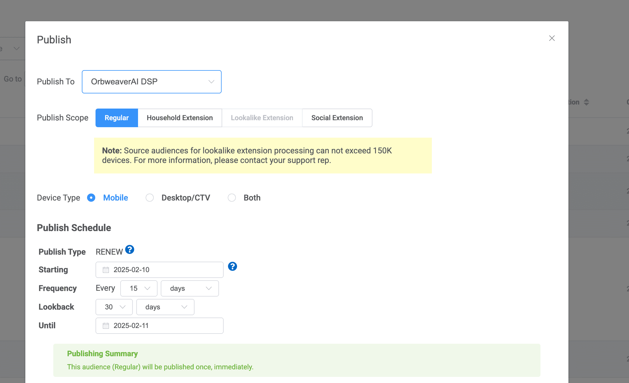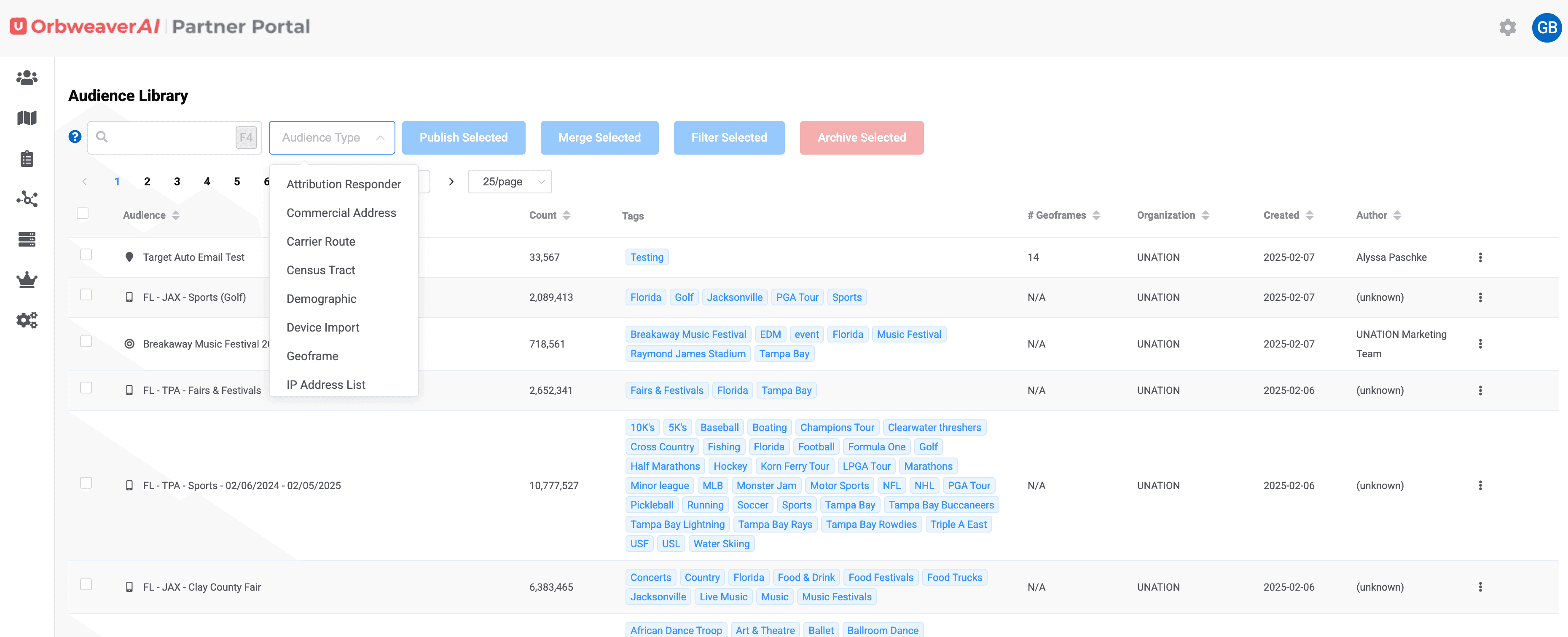At any time you can select the "get count" option and you'll see how many devices OrbweaverAI has stored in those categories. Once ready, you can create an audience, which will then appear in your Audience Library