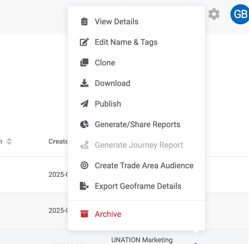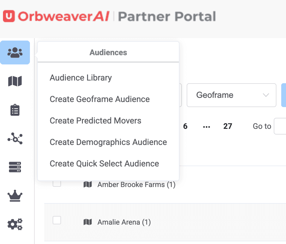 Once saved, the Geoframe Audience will live in your Audience Library, where you can perform other desired actions. You access the Audience Library as the first selection on the top of the Left Hand Menu.